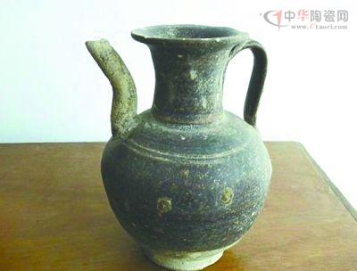 當(dāng)天,彭爹爹還駕船帶賴曉平到其他幾戶漁民家考察。在一戶漁民家,他們看到了一件非常完整的貫耳長流盤口壺。該壺為青瓷黑釉,十分優(yōu)美,典型的宋代工藝特點。青瓷盤口壺因在湖水中浸泡時間太長,壺嘴上面釉質(zhì)有些剝脫,并沾有出水后干枯的苔蘚。
