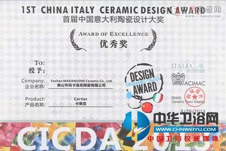 5月29日晚,由意大利對外貿(mào)易委員會及意大利陶瓷機(jī)械及設(shè)備制作協(xié)會,聯(lián)合中國陶瓷行業(yè)權(quán)威媒體陶城報,共同舉辦的首屆中國意大利陶瓷設(shè)計大賽頒獎禮,在佛山新媒體產(chǎn)業(yè)園隆重舉行,斂迥岽纱u“卡蒂亞”系列,憑借高超的工藝技術(shù),采用仿自然石頭斷面的紋理效果,濃厚的自然氣息受到評委團(tuán)的一致好評,授予首屆中國意大利陶瓷設(shè)計大獎優(yōu)秀獎。