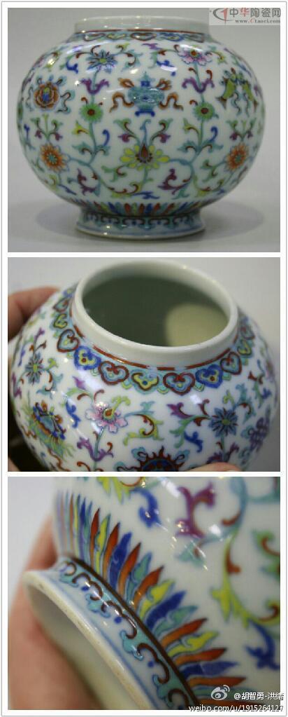 近日,北京著名古董鑒定家胡志勇在其微博中說,香港佳士得2013春拍的一件重要拍品,乾隆官窯斗彩小罐新老可能存疑。這件拍品于剛剛結(jié)束的香港佳士得春拍中以260萬港幣落錘。有支持胡志勇的網(wǎng)友笑稱:“只要送得進(jìn)去(拍賣公司),都能掙錢。”