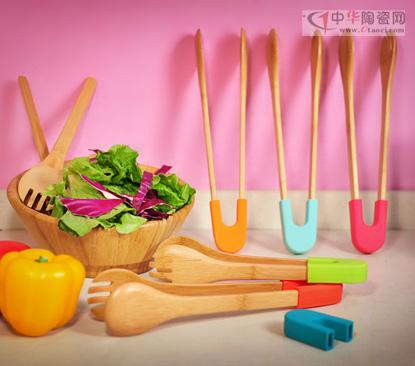 如圖所示五彩繽紛的廚房用具是國內(nèi)首創(chuàng)的竹子結(jié)合硅膠產(chǎn)品, 為廣東木森日用品有限公司的發(fā)明專利產(chǎn)品。食用級的安全硅膠材料除了有增加摩擦力防滑功能外,更有一種柔軟舒服的手感。兩種環(huán)保材質(zhì)完美結(jié)合,為生硬的廚房增添了一道靚麗的風景。