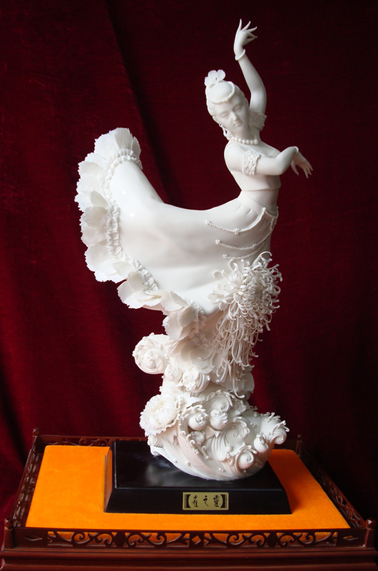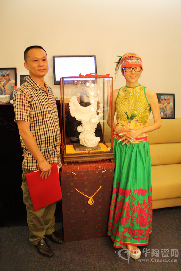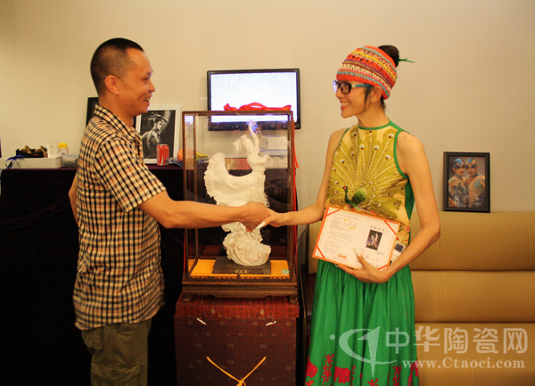 2013年6月10日,一場(chǎng)以瓷為舞的交流在廈門(mén)進(jìn)行,由福建省陶瓷藝術(shù)大師、高級(jí)工藝美術(shù)師蘇志強(qiáng)創(chuàng)作的德化陶瓷孔雀舞作品《雀之靈》贈(zèng)于“孔雀舞皇后”楊麗萍,F(xiàn)場(chǎng),楊麗萍對(duì)德化陶瓷的工藝及精細(xì)甚為贊嘆。