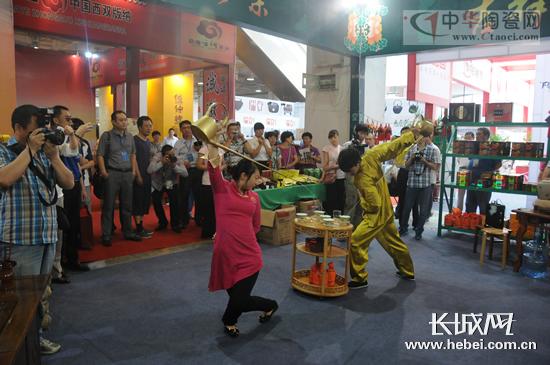 本屆展會內(nèi)容比較豐富,活動較為精彩,其中在開幕當(dāng)天13號上午的紫砂壺藝術(shù)講座,由宜興紫砂行業(yè)協(xié)會秘書長紫砂文化研究會時順華會長,中國陶瓷藝術(shù)大師邱玉林先生主講,下午由來自云南農(nóng)業(yè)大學(xué)教授盛軍先生講關(guān)于茶與養(yǎng)生方面的知識講座,另外特別是吉祥茶業(yè)、介福茶業(yè)還帶來了陣容龐大的表演團(tuán)隊每天表演,為現(xiàn)場助興。