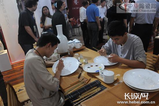盤子作畫。長城網(wǎng) 孫陽 攝