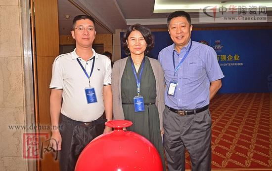 中國(guó)輕工業(yè)聯(lián)合會(huì)副會(huì)長(zhǎng)杜同和(中)、中國(guó)輕工業(yè)聯(lián)合會(huì)才大穎主任(右)與富貴紅徐少東合影