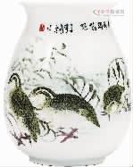 叩開陶瓷藝術(shù)大門的熊聲貴,一路高歌。他巧妙地運(yùn)用高溫色釉、釉下五彩、堆雕等裝飾手段,創(chuàng)造出至今無人超越的堆白工藝。獲得首屆中國工藝品精品大賽金獎的《幽然瓶》就是用難度極高的堆白工藝,使白鷺的羽毛層次分明,打造出茶紅色釉交融的復(fù)古美感。他甚至還把西漢漆畫和一些漢代美學(xué)元素運(yùn)用到陶瓷裝飾中,創(chuàng)作了《鳳紋西子壇》、《牡丹纏枝紋瓶》等古典韻味的作品。