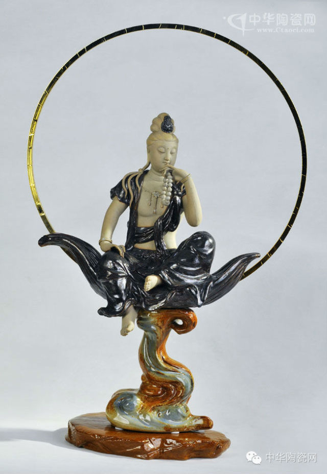 “這尊祥云觀音在2012年11月榮獲中國上海國際藝術(shù)節(jié)第十四屆中國工藝美術(shù)大師精品博覽會暨《中國工藝美術(shù)藝術(shù)優(yōu)秀作品評選》金獎,是我們在色釉料配方研發(fā)創(chuàng)作出的又一件精品之作。”坤恒工藝品有限公司總經(jīng)理柯國鎮(zhèn)告訴我們。