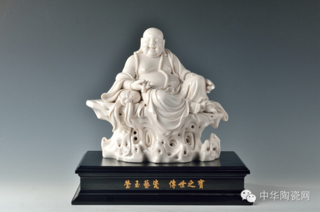 福建省工藝美術(shù)大師 蘇友德作品--9英寸坐巖戲魚彌勒,手刻簽名