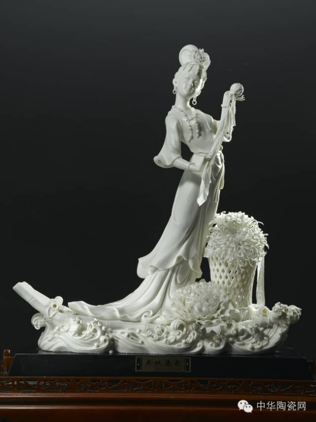 悠悠漓江水載著美麗的劉三姐和綻放的菊花與牡丹花,白瓷釉色潔白凝厚,溫潤(rùn)雅致,把劉三姐塑造得更加清秀俊逸、超凡脫俗。踏著竹排在漓江上漂流的“劉三姐”手持繡球欲向情歌拋去……這廣西特有的動(dòng)人風(fēng)情畫(huà)面,就是德化“中國(guó)白”瓷雕《大地飛歌·劉三姐》所定格的精彩一幕。在2008年10月份開(kāi)幕的第五屆中國(guó)——東盟博覽會(huì)上,作品被作為國(guó)禮贈(zèng)送給東盟各國(guó)領(lǐng)導(dǎo)人,2010年泉州霞洲媽祖宮赴臺(tái)灣臺(tái)南大天后宮祭奠之時(shí),德化瓷塑作品《大地飛歌》被作為禮品贈(zèng)送給國(guó)民黨主席馬英九。