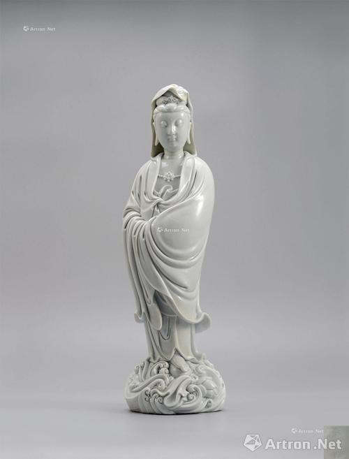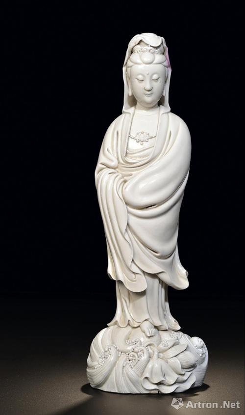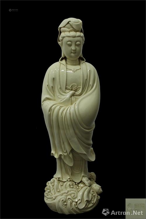 明代后期以來(lái),至清代,德化窯以塑像聞名于世,特別是觀音、達(dá)摩、關(guān)公、文昌君等佛道人物,神情生動(dòng),刻畫細(xì)致入微,觀音為福建德化窯白釉品種中最著名的塑像題材,然而觀音題材仍以坐像為主,觀音立像在德化觀音品種中所占比例較少,且精品更甚。