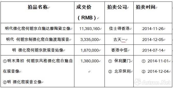 引言:2014年11月26日,明代德化窯何朝宗白釉達(dá)摩陶瓷立像在香港佳士得拍出了一千一百多萬(wàn),創(chuàng)下了德化白瓷的新紀(jì)錄。明代德化白瓷在我國(guó)瓷器發(fā)展史上具有特殊的地位,也是福建最具有代表性的藝術(shù)品類之一。興于宋元、盛于明清的德化白瓷是當(dāng)年“海上絲綢之路”的重要出口產(chǎn)品,十八世紀(jì)的法國(guó)人特意為它創(chuàng)造出一個(gè)專有名稱—“中國(guó)白”。幾百年來(lái),德化瓷受到歐洲各國(guó)皇室貴族的“寵愛”,在世界各地許多博物館的館藏中都有它的身影,有的博物館還將其列為鎮(zhèn)館之寶,使德化瓷成為世界陶瓷文化遺產(chǎn)中的經(jīng)典項(xiàng)目,德化窯也被世界各國(guó)譽(yù)為世界的“官窯”。那么,除了何朝宗的那尊達(dá)摩立像外,2014年還有哪些德化瓷拍出了高價(jià),這些高價(jià)德化瓷將為2015年的德化瓷藝術(shù)市場(chǎng)提供什么樣的創(chuàng)作與發(fā)展思路?
