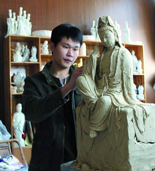 他是林吉祥,1985年出生在德化縣雷峰鎮(zhèn)朱紫村,剛剛步入而立之年的他結(jié)緣瓷雕卻已有15年。