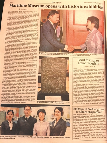文萊當(dāng)?shù)貓?bào)紙大篇幅報(bào)道本次展覽