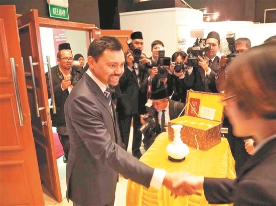 由泉州海交館與文萊海洋博物館聯(lián)合舉辦的此次展覽,也是文萊海洋博物館新館開(kāi)放的重頭戲,籌備時(shí)間將近一年。開(kāi)幕式當(dāng)天,文萊王儲(chǔ)穆赫塔迪·比拉在中國(guó)駐文萊大使楊健的陪同下參觀了泉州“海絲”展覽,泉州海交館工作人員向王儲(chǔ)一行進(jìn)行詳細(xì)講解。參觀過(guò)程中,王儲(chǔ)多次提問(wèn),對(duì)中國(guó)與文萊自西漢以來(lái)所建立的長(zhǎng)期友好關(guān)系十分感興趣,并非常贊賞泉州德化白瓷制作工藝。