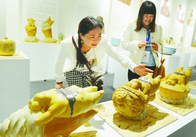 3月27日,2015中國陶瓷藝術(shù)大展暨首屆湖南(醴陵)陶瓷博覽會(huì)長沙望城銅官窯展區(qū),參觀者饒有興致地觀看展品。湖南日?qǐng)?bào)記者 徐行 攝