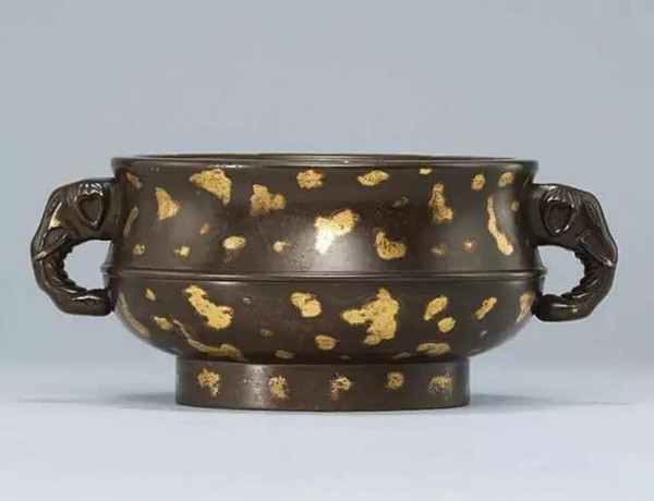 清 銅環(huán)耳三足爐蓮花瓣式座