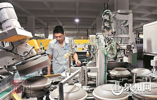 德化縣協(xié)發(fā)光洋陶瓷企業(yè)從國(guó)外引進(jìn)六條全自動(dòng)生產(chǎn)線,瓷坯自動(dòng)滾壓成型,既節(jié)省勞動(dòng)力,又提高產(chǎn)量。近年來,德化眾多陶瓷企業(yè)主動(dòng)適應(yīng)經(jīng)濟(jì)新常態(tài),不斷探索產(chǎn)業(yè)轉(zhuǎn)型升級(jí)之路。去年該縣實(shí)現(xiàn)陶瓷產(chǎn)值177.15億元。