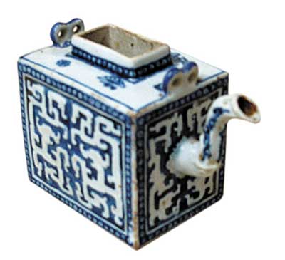 陶瓷制作工藝處于手制時(shí)期,古人根據(jù)粘土的可塑性,就能制作出非常豐實(shí)的造型來,方器當(dāng)然也不例外。如距今七千年左右的河姆渡遺址,在第四層就出土一件長(zhǎng)方形陶缽,側(cè)面尚刻有豬的形象作裝飾。這是一件有代表性的方器造型。在而后的漫長(zhǎng)歲月里,方的造型屢見不鮮。如秦的陶量、漢墓中出土的明器如廁所、倉庫、豬圈等也是方的造型蛻化。浙江義烏博物館藏有一件漢代陶鈁,從口到足都是方的,江西婺原博物館收藏的一件三國(guó)陶權(quán),也是方的。在南方各地出土的六朝時(shí)期谷倉罐上的樓臺(tái)亭閣,亦當(dāng)列為方的造型。唐代,各地出土的方器則更多,最有代表性的器物是瓷枕,方的、長(zhǎng)方形的均有。不過在唐以前,方的造型基本上都是手制的。