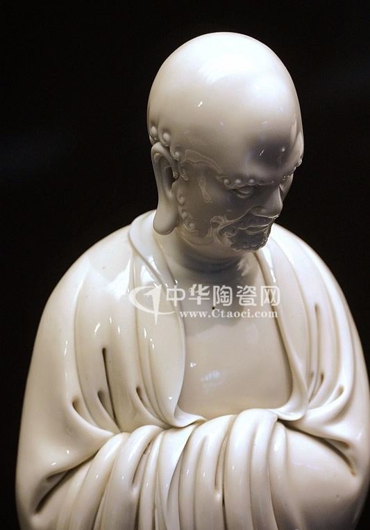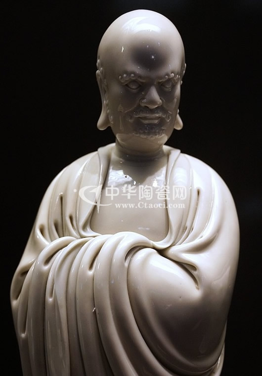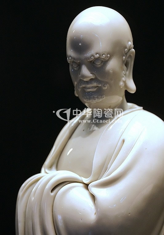 2014年11月26日,香港佳士得2014年秋拍“重要中國瓷器及工藝精品”專場在香港會(huì)議展覽中心舉槌。以其類似的作品,明16世紀(jì)德化白釉達(dá)摩立像以1444萬港元成交。