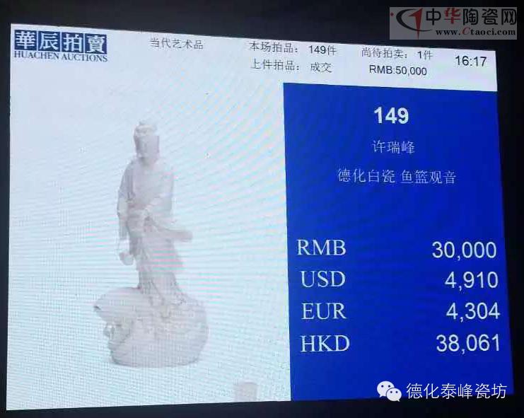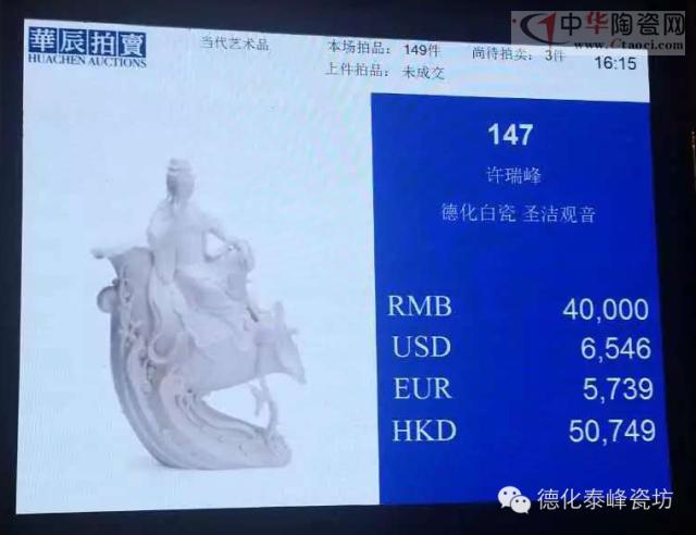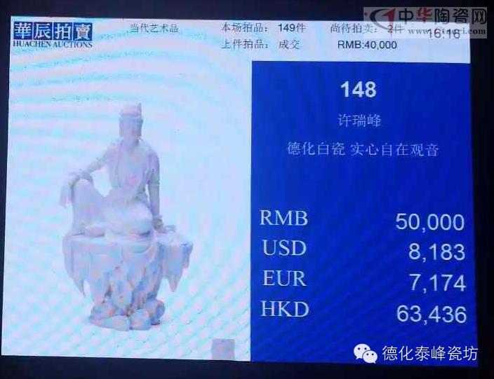 德化許氏瓷塑第六代傳人許瑞峰大師三件作品以百分百的成交率成交,三件作品共拍出總價(jià)12萬元。