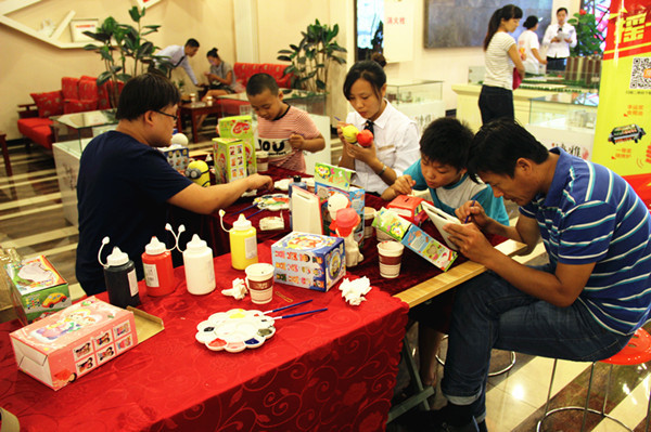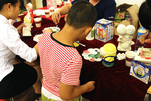 俗話說“打虎親兄弟 上陣父子兵”,老爸們帶著兒子專心致志彩繪陶瓷的模樣像是在精心雕琢世上最寶貴的東西。生活總是太忙碌,難得還有這樣的機(jī)會(huì)和時(shí)間,跟最愛的家人一起和樂處之。