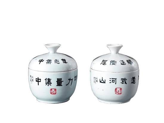 此次還有別出心裁的瓷器上印制著“意志集中、力量集中、節(jié)約救國、一心一意 共赴國難”等口號(hào),據(jù)介紹這一部分有來自學(xué)校的教育創(chuàng)意,如一個(gè)花瓶上就書銘有大字醒目的“為國干城”以及“永春縣私立中小學(xué)第二屆運(yùn)動(dòng)會(huì)男子個(gè)人優(yōu)勝獎(jiǎng)品”等字樣,將這含義深刻的花瓶作為學(xué)生體育競(jìng)賽的獎(jiǎng)品,教育鞭策學(xué)生奮發(fā)圖強(qiáng)、為國效力,做國家的捍衛(wèi)者,飽含著濃濃的保家衛(wèi)國、抗戰(zhàn)到底的民族情懷。