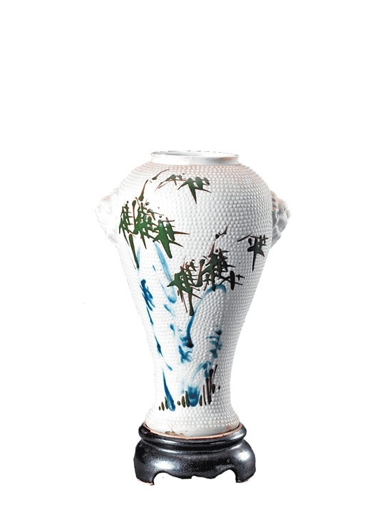 “珍珠釉竹鳥紋雙耳瓶”