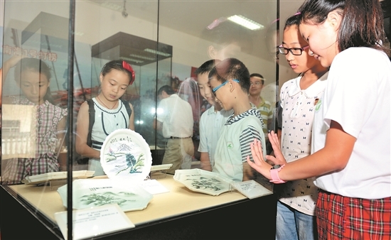 花瓶、茶杯、茶盤、蓋罐、筆筒……以“紀(jì)念中國人民抗日戰(zhàn)爭暨世界反法西斯戰(zhàn)爭勝利70周年”為主題的德化抗戰(zhàn)瓷展在德化陶瓷博物館展出,這類瓷器自稱體系,背后濃縮著德化民眾艱苦抗戰(zhàn)的一段歷史。