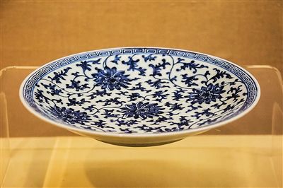 海南省博物館收藏的海南出土清代青花纏枝蓮紋盤。原藏瓊海市博物館,底款“大清乾隆年制”。