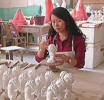 【同期聲:工藝美術(shù)師 曾素妹 :因?yàn)槲覀冇畜w現(xiàn)我們德化泥塑的一個(gè)藝術(shù),還有我們德化中國(guó)白瓷土,高端瓷土,還有就是說(shuō)我們做這一套出來(lái),我們是有一定的收藏價(jià)值意義。】