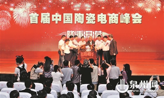 與會(huì)領(lǐng)導(dǎo)和嘉賓共同點(diǎn)亮首屆中國(guó)陶瓷電商峰會(huì)啟動(dòng)球