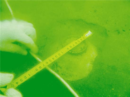 考古隊(duì)員對(duì)水下的文物進(jìn)行測(cè)量