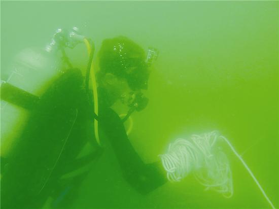 考古隊(duì)員在水下進(jìn)行調(diào)查
