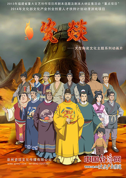 為了宣傳“德化瓷燒制技藝及文化”非物質(zhì)文化遺產(chǎn),泉州瓷燚文化傳播有限公司在2011年籌備打造推出陶瓷主題系列動畫片《瓷燚》。據(jù)了解,這部動畫片先后獲得2013年福建省重大文藝創(chuàng)作項(xiàng)目庫劇本選題及劇本大綱征集活動重點(diǎn)項(xiàng)目、2014年文化部文化產(chǎn)業(yè)創(chuàng)業(yè)創(chuàng)意人才扶持計(jì)劃動漫游戲項(xiàng)目、2015年金恐龍亞洲創(chuàng)意薈國際動漫藝術(shù)周鼓勵獎等。“一方面,陶瓷文化是德化縣最傳統(tǒng)的文化,同時動畫也是現(xiàn)在的新興產(chǎn)業(yè),我們希望將傳統(tǒng)的陶瓷文化與動漫產(chǎn)業(yè)進(jìn)行創(chuàng)意的結(jié)合,在動畫片中,將德化的民俗風(fēng)情融入到故事情節(jié)當(dāng)中,借此傳播德化陶瓷燒制技藝,傳承發(fā)揚(yáng)德化陶瓷文化,同時也向更多人推介我們的德化旅游”《瓷燚》的項(xiàng)目負(fù)責(zé)人江志堅(jiān)這樣談到。他也表示,希望通過動畫的傳播方式,在潛移默化中加深人們對于陶瓷文化的理解,一改以往單單停留在傳統(tǒng)制作層面的認(rèn)識。