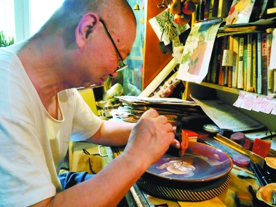 年過(guò)七旬的茅子芳住在朝陽(yáng)區(qū)南沙灘社區(qū),他有一個(gè)絕活兒,那就是用金剛刀在瓷器上進(jìn)行篆刻。