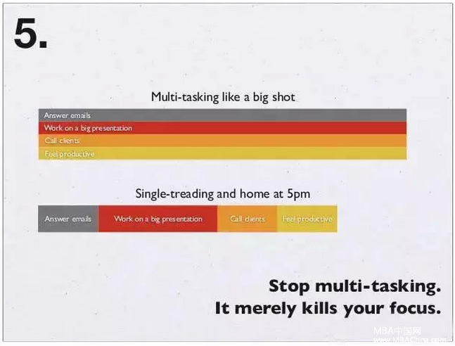 不要多任務(wù),這只會(huì)消耗注意力;保持專注,一心一用。