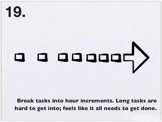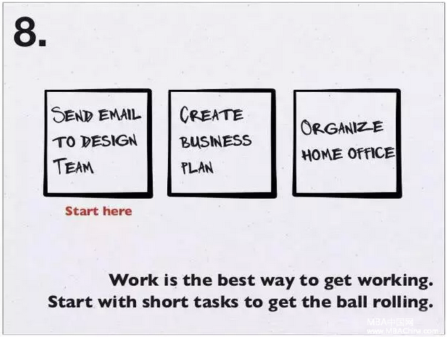 進(jìn)入工作狀態(tài)的最佳方式就是工作,從小任務(wù)開(kāi)始做起,讓工作運(yùn)轉(zhuǎn)起來(lái)。