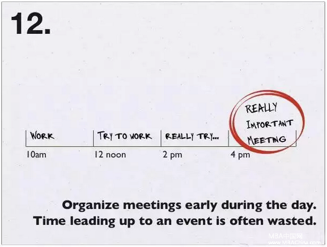 有會(huì)議就盡早安排,用于準(zhǔn)備會(huì)議的時(shí)間往往都被浪費(fèi)了。