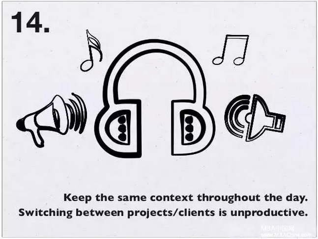 一整天保持相同的工作環(huán)境。在項(xiàng)目或客戶間切換,效率會(huì)低。