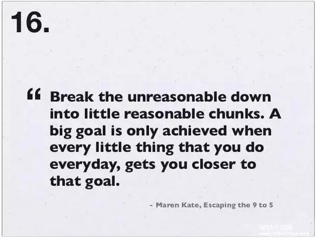 把不切實(shí)際的任務(wù)分割成合理的小任務(wù),只要每天都完成小任務(wù),就會(huì)越來(lái)越接近大目標(biāo)。