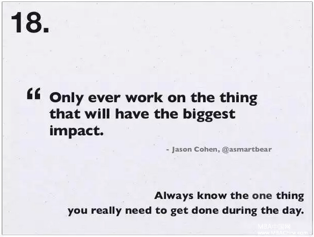 必須清楚白天必須完成的事是什么。只去做那件有最大影響的事。
