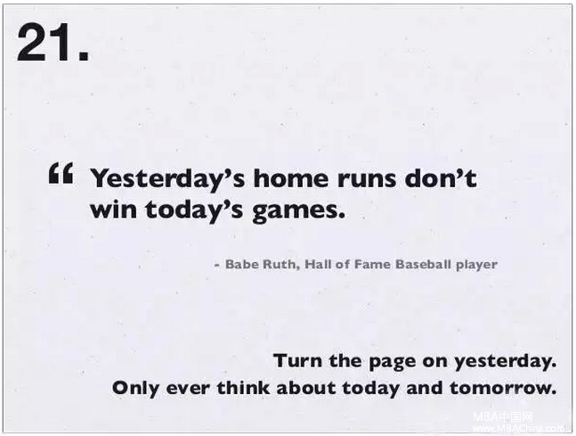 把昨天翻過(guò)去,只考慮今天和明天:好漢不提當(dāng)年勇。