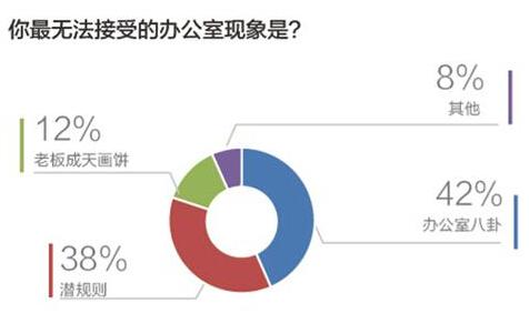雖然年輕人愛(ài)玩樂(lè),但職場(chǎng)態(tài)度端正,求職時(shí)也主動(dòng)篩選風(fēng)氣良好的雇主。42%的人最討厭辦公室八卦,同時(shí)也厭惡潛規(guī)則。
