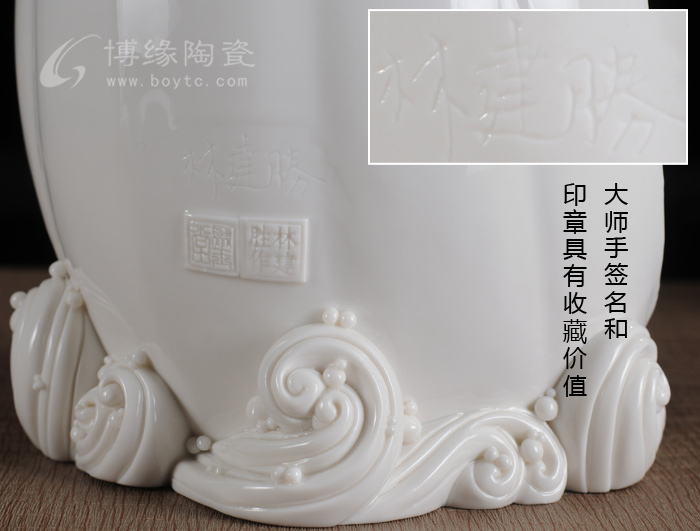 鬼斧神工的雕塑技藝,又有世界名貴的稀有材料、完美無(wú)瑕的燒制工藝的加持,使得林建勝的瓷塑作品深得收藏界的青睞。近十年來(lái),他的瓷塑作品價(jià)格至少翻了10倍以上。眼下,林建勝無(wú)論閱歷、眼力還是智力、體力都是人生的巔峰時(shí)刻,是藝術(shù)家創(chuàng)作成熟時(shí)期與黃金時(shí)期,收藏界深諳林建勝的瓷塑作品升值速度快,升值空間大,市場(chǎng)前景無(wú)量,因此,中國(guó)收藏家協(xié)會(huì)授予林建勝“中國(guó)收藏家喜愛(ài)的陶瓷藝術(shù)大師”榮譽(yù)稱號(hào)。