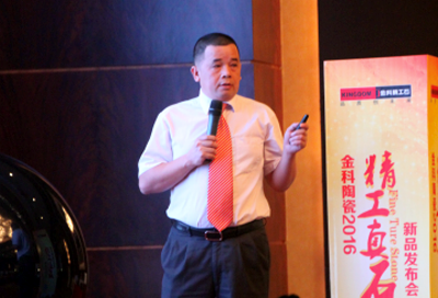 發(fā)布會現(xiàn)場,金科銷售顧問傅世莊上臺致辭,分析了當(dāng)前的市場以及金科陶瓷的應(yīng)對策略和發(fā)展方向,讓經(jīng)銷商更深入了解行業(yè)形勢以及明確經(jīng)營方向。傅總表示,金科陶瓷2016年將加強產(chǎn)品開發(fā),優(yōu)化產(chǎn)品結(jié)構(gòu),淘汰落后產(chǎn)品,加強終端銷售指引,為品牌和經(jīng)銷提供客戶資源和開發(fā)渠道。