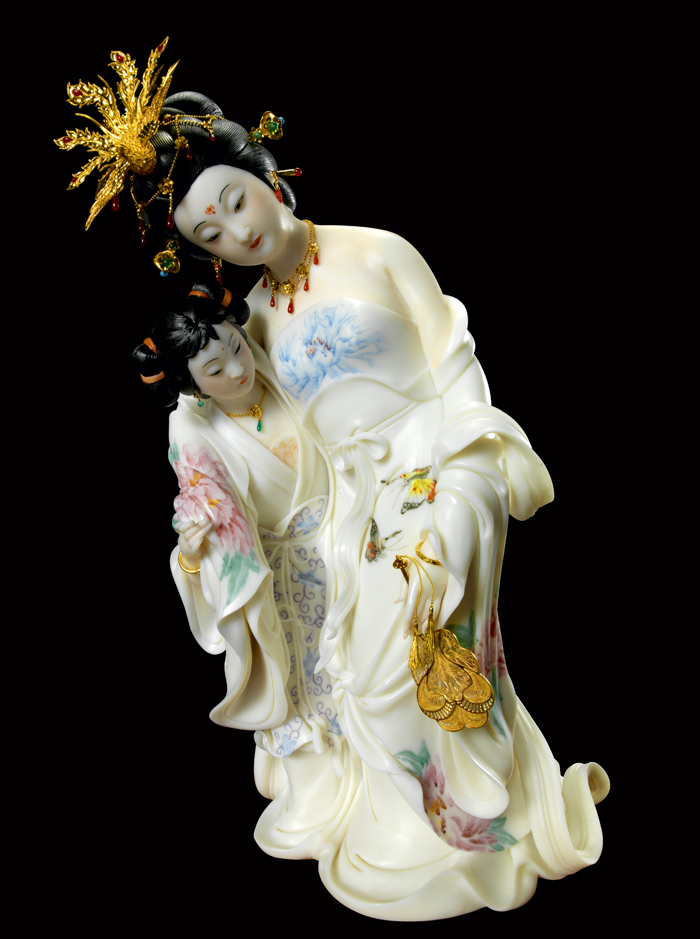 近年來,許瑞卿在傳統(tǒng)瓷雕領(lǐng)域不斷地承家學(xué),致力發(fā)揚許氏瓷雕精髓,同時又到高校深造,廣泛涉獵現(xiàn)代藝術(shù),在傳承與創(chuàng)新中生發(fā)新的藝術(shù)靈感,尤其在仕女創(chuàng)作與實心瓷雕的嘗試上走出了一條“古藝成新技,古意開新境”之路。