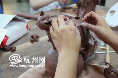 今年,陶賽的主題為“China,給你不一樣的體驗(yàn)”,主辦方希望學(xué)生們通過陶藝創(chuàng)作,讓陶泥說話,展現(xiàn)杭州的獨(dú)特韻味,表達(dá)“喜迎G20峰會(huì)”的東道主情懷。本屆大賽從3月份啟動(dòng)以來,有103所中小學(xué)校參加,選送優(yōu)秀參賽作品 278 組,經(jīng)專家初評(píng)共有53組作品、70多位中小學(xué)生入圍決賽,爭奪一、二等獎(jiǎng)。參加決賽的選手要按照自己選送的作品模樣,在規(guī)定的2個(gè)小時(shí)內(nèi)重新進(jìn)行制作,主要考察選手的捏塑技能、熟練程度和原創(chuàng)性。