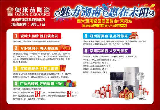 在即將來臨的 8月促銷黃金檔期,奧米茄陶瓷依舊保持高漲的活動熱度,由品牌總部牽頭,攜手耒陽區(qū)域經銷商及其銷售團隊,即將對耒陽的建材市場發(fā)起猛烈的促銷讓利攻勢!