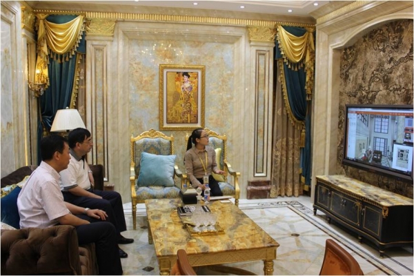 當(dāng)天下午,徐金鵬社長(zhǎng)一行人參觀了結(jié)合云商平臺(tái)打造的歐神諾陶瓷新展廳,體驗(yàn)了全新的消費(fèi)模式,并與歐神諾的董事長(zhǎng)鮑杰軍進(jìn)行了座談。