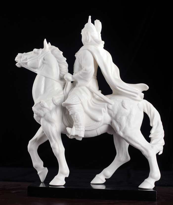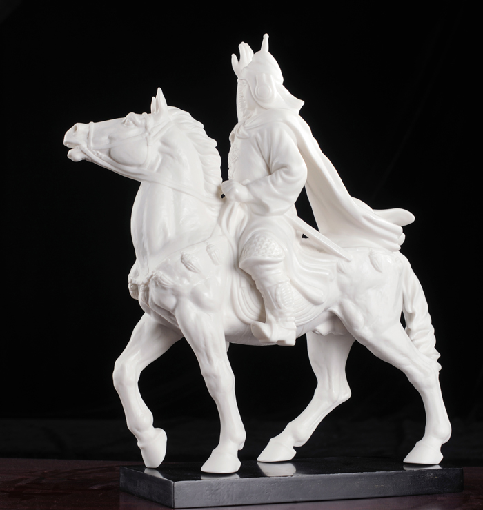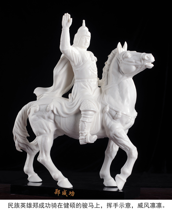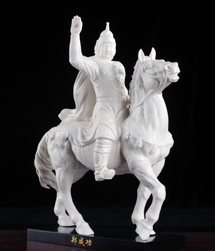 蔡國(guó)海作品《鄭成功》,是以泉州市大坪山上世界最大的“鄭成功”雕塑為原形,用瓷都德化傳統(tǒng)的雕塑工藝制作而成。