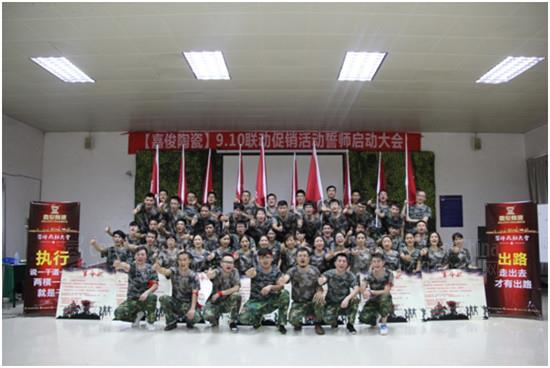 8月16日-8月18日,嘉俊陶瓷在廣州花都開展為期兩天兩夜封閉式、軍事化的廣東區(qū)域聯(lián)動(dòng)促銷活動(dòng)誓師啟動(dòng)大會(huì)。來自廣東番禺、南沙、英德、高州、中山、惠州、淡水、興寧、塘廈、常平等地的經(jīng)銷商老板及其員工,總部業(yè)務(wù)和市場(chǎng)部人員共60余人。